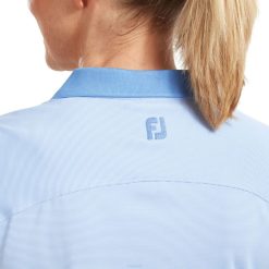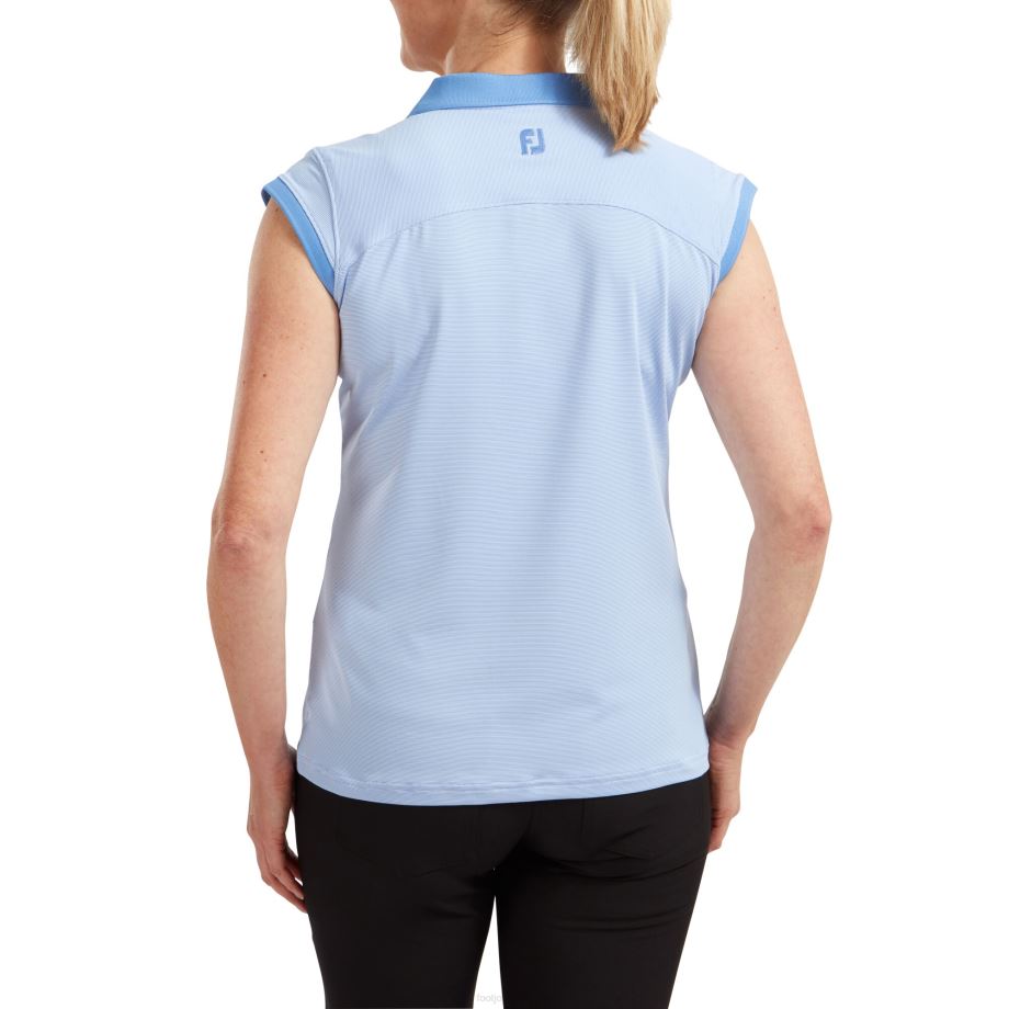 - fj prodry leve stretch lisle em todo o layout de microlistras manga boné e construção aberta com decote em V gola, carcela e punhos de cor sólida tecnologia de absorção de umidade afasta a umidade do corpo