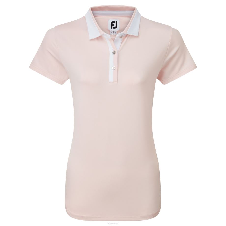 - tecido jacquard elástico e liso em todo o padrão birdeye, carcela e gola coordenadas em dois tons, prata ornamental, botões fj, tecnologia de absorção de umidade, afasta a umidade do corpo li>