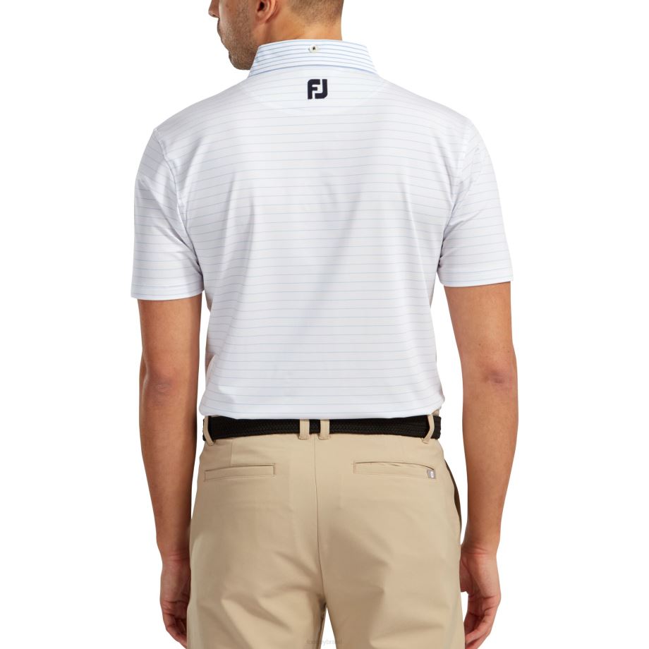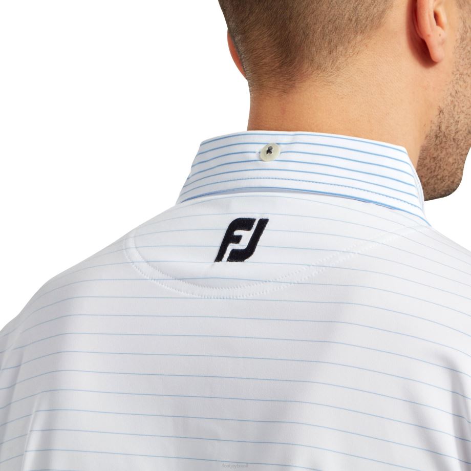 - layouts de listras contrastantes para o corpo e bolso no peito no lado direito do usuário, remate de barra contrastante, debrum de suporte de gola e botão contraste de linha na gola esquerda frontal e na pala traseira a tecnologia de absorção de umidade do logotipo fj afasta a umidade do corpo
