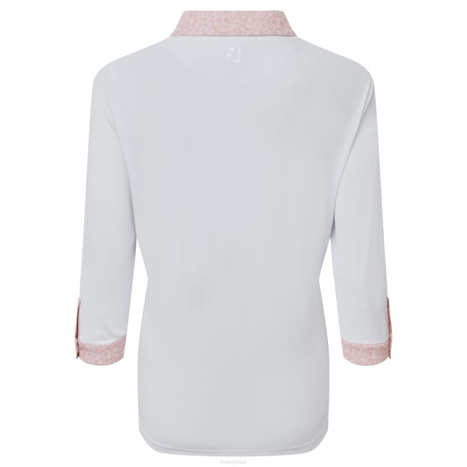 - fj prodry tecido piquê elástico corpo de cor sólida com gola, carcela e punhos estampados em pontos tonais Construção de manga 3/4 bolso falso no peito direito botões fj prateados ornamentais para absorção de umidade tecnologia afasta a umidade do corpo