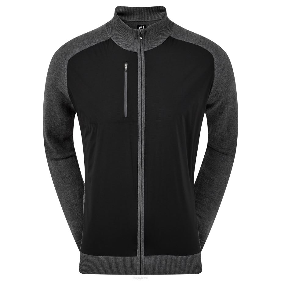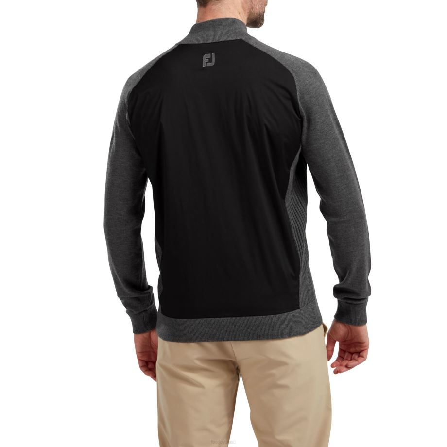 carvão preto L6VB1225 suéter de mistura de lã com zíper completo preto-carvão Footjoy