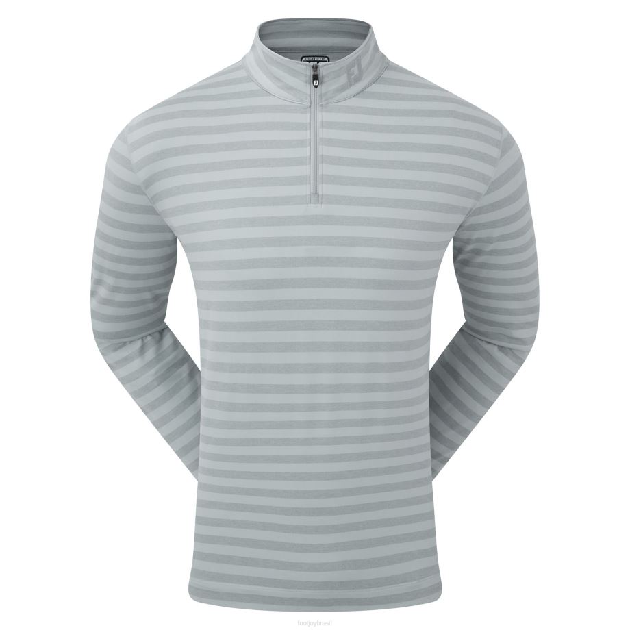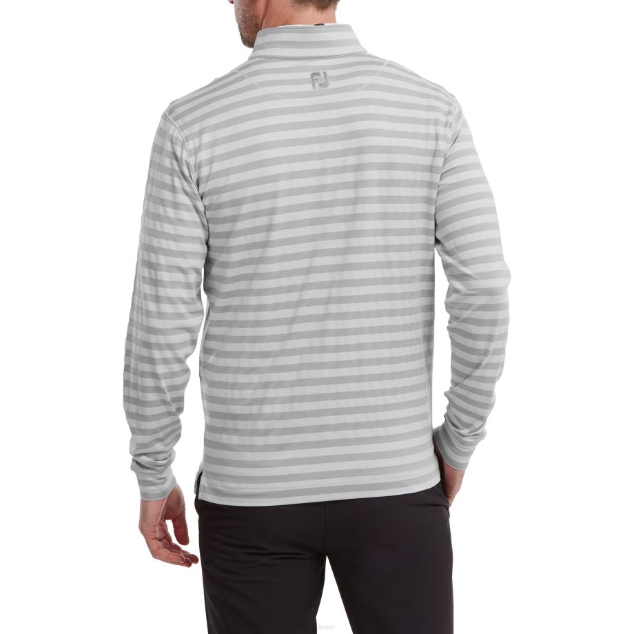 - padrão de listras em tom sólido e mesclado em toda a gola