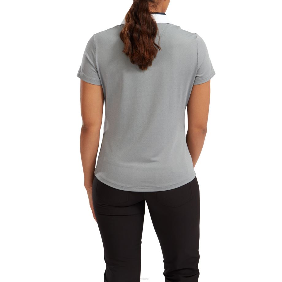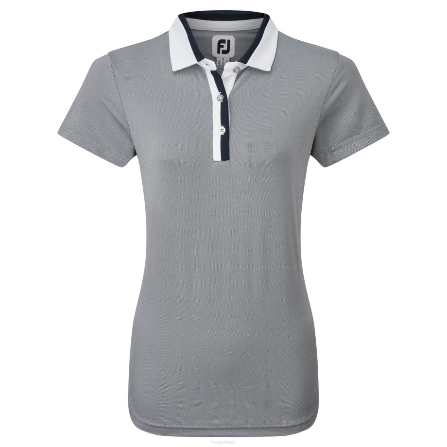 - tecido jacquard elástico e liso em todo o padrão birdeye, carcela e gola coordenadas em dois tons, prata ornamental, botões fj, tecnologia de absorção de umidade, afasta a umidade do corpo li>
