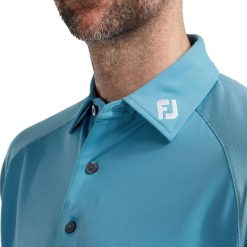 - fj prodry corpo pique tecido contrastante jacquard malha fabirc sobre ombro e mangas manga raglan atlética cor de construção coordenada gola frontal esquerda e pala traseira tecnologia de absorção de umidade do logotipo fj desenha umidade longe do corpo