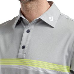 - fj prodry tecido piquê liso elástico, cor sólida com listras no peito projetadas em dois tons, gola listrada coordenada, cor coordenada, gola frontal esquerda e cano traseiro, umidade do logotipo fj a tecnologia de absorção afasta a umidade do corpo