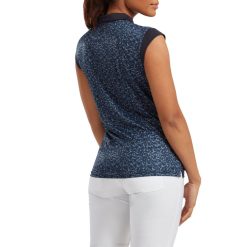 marinha L6VB1559 camisa lisle feminina azul marinho sem mangas com acabamento no pescoço Footjoy