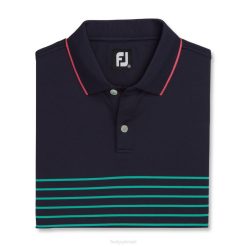 verde marinho-mar L6VB1768 gola autocolante em piquê com faixa listrada verde marinho e mar Footjoy