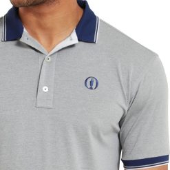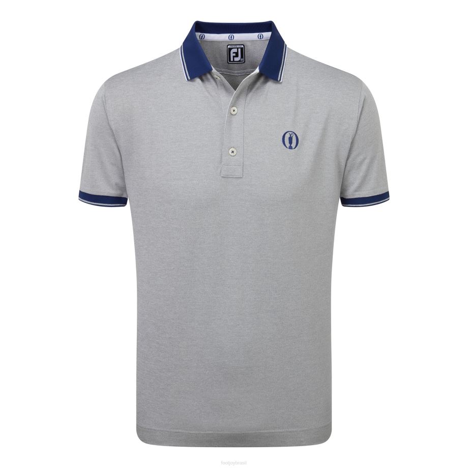 azul urze prateado aberto L6VB164 camisa pólo azul prateada aberta com acabamento Footjoy