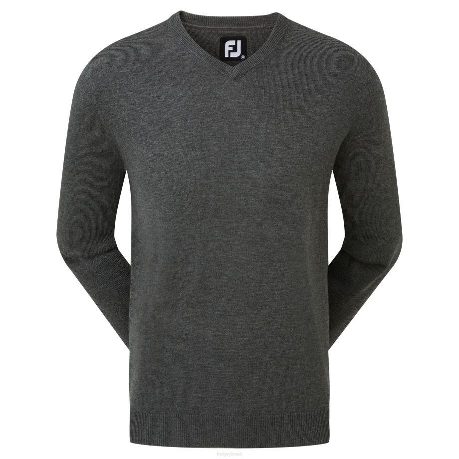 carvão de urze L6VB1088 pulôver mescla de lã carvão urze com decote em V Footjoy