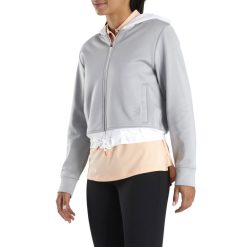 guarnição de tecido cinza-branco urze L6VB2569 moletom com capuz de lã recortado feminino estilo temporada anterior urze cinza-branco acabamento em tecido Footjoy