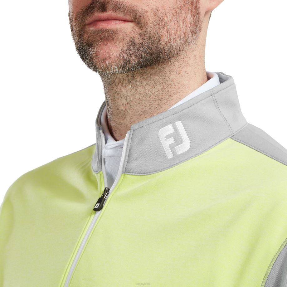 - construção de meio zíper contrastante na frente, gola esquerda e encaixe traseiro fj a tecnologia de absorção de umidade do logotipo afasta a umidade do corpo