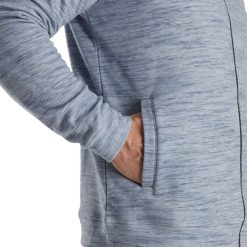 tecido de fácil manutenção O tecido fácil de cuidar pode ser lavado na máquina com o mínimo de enrugamento ou encolhimento. elasticidade nas quatro direções, este tecido leve oferece extremo conforto com um design esportivo e permite total amplitude de movimento dentro ou fora do percurso. O tecido respirável que absorve a umidade ajuda a afastar a umidade do corpo para maior conforto. tecnologia antimicrobiana, esse acabamento antimicrobiano ajuda a inibir o acúmulo de odores quando há umidade ambiente. construção com zíper completo, um zíper frontal completo permite fácil acesso durante mudanças nas condições climáticas. origem importada