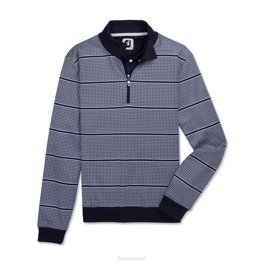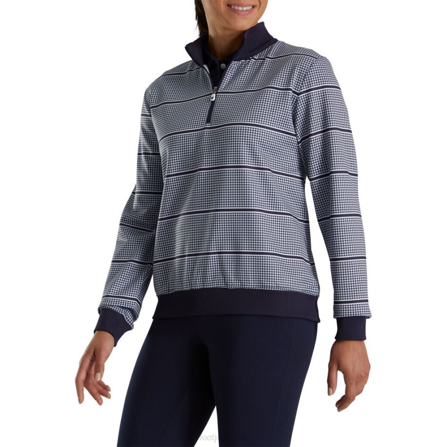 marinha L6VB2466 meio zíper com estampa houndstooth camada intermediária feminina azul marinho Footjoy