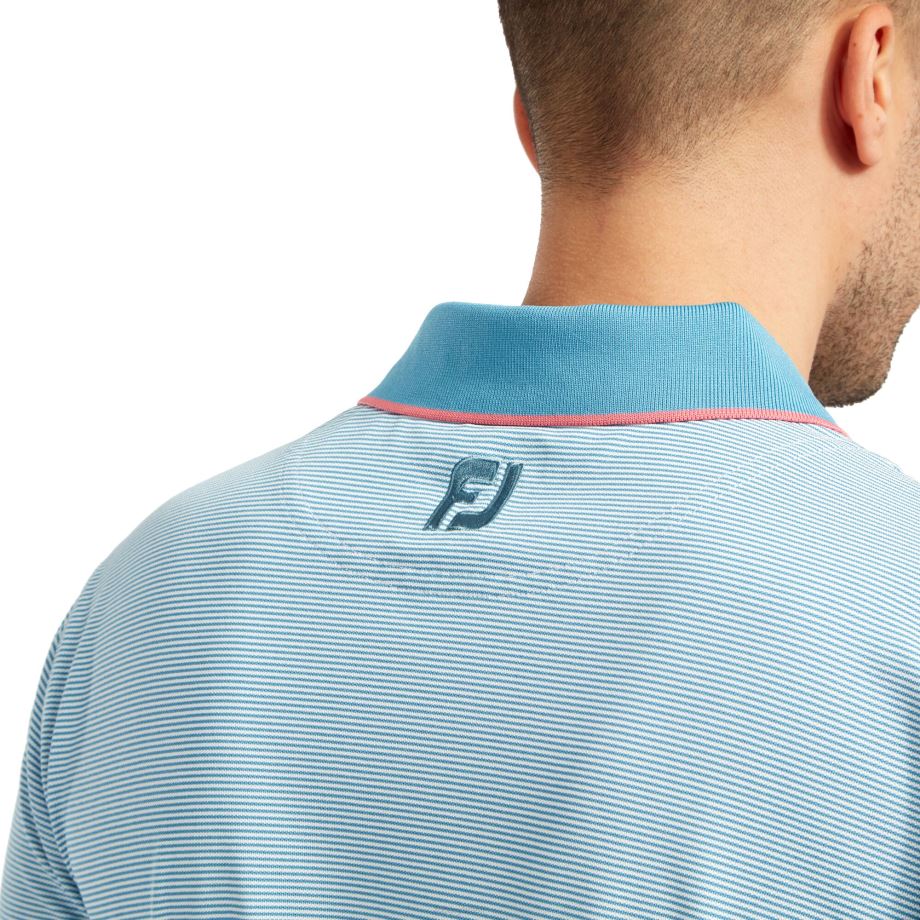 - tecido piquê elástico fj prodry em todo o layout de minilistras em dois tons, gola e punhos em malha canelada de cor sólida, cores contrastantes na gola e nos punhos