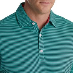 verde marinho-mar L6VB1768 gola autocolante em piquê com faixa listrada verde marinho e mar Footjoy